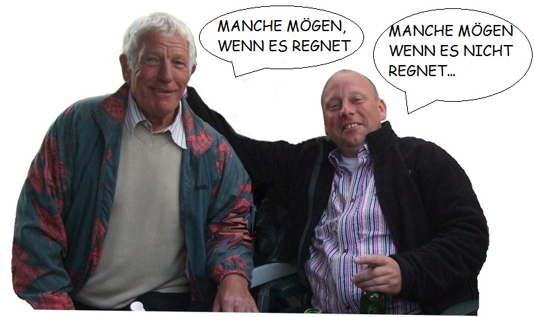Wir wollten hart sein, sehr hart. Die brutalen Wetterkapriolen zwangen uns nun doch, den inneren Bereich der Gaststätte aufzusuchen. Nass, aber wirklich patsche nass machten wir uns vom Acker, um die Pinte von innen kennenzulernen. In der Hand noch einen Brocken Fleisch, kauend suchten wir uns einen Platz am Tresen. Erst mal ein unverdünntes Bier und zum Abschluss einen Kaffee, der die Sinne in den oberen Hirnhälften wieder in geordnete Bahnen lenkte. Wie Bescheuert muss man sein, um sich so etwas anzutun? Das erwachen aus unseren Zustand wurde nun beim hören der zu zahlenden Summe schlagartig vollzogen. Fünfundfünfzig Euros pro Pärchen. Den Nassen Arsch gab es als Beilage gratis. Dazu ist nichts mehr zu sagen. „Siehste wohl das nennt man Camping“