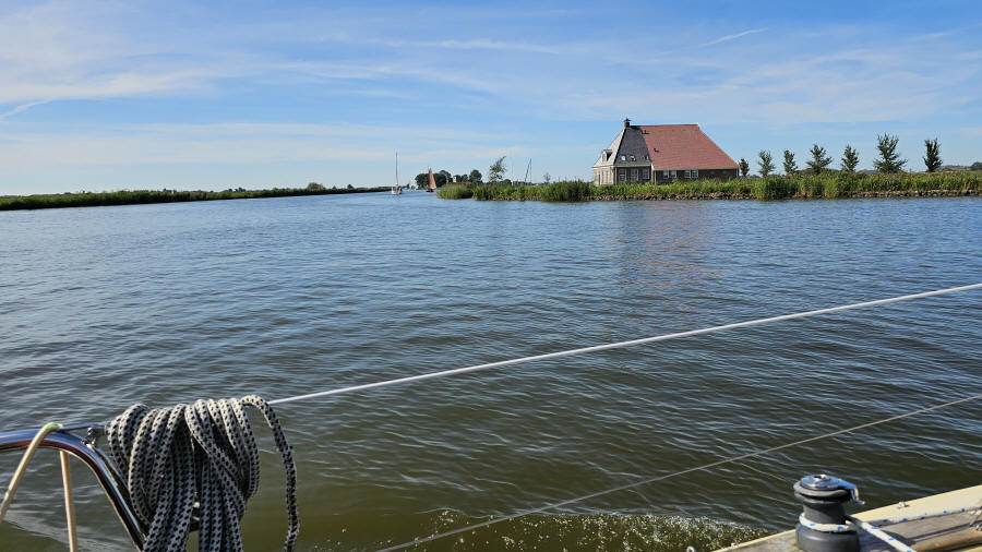 In Grou verlassen wir den Prinses Margriet Kanal. Die Hinweistafeln am Ufer weisen uns den Weg. Angedacht war eine Übernachtung am Teehaus in Grou.. Hier hat sich aber seit unserem letzten Besuch sehr viel verändert so dass wir uns entschlossen bis Werega durch zu fahren."Eines schöner als das andere, der vielen Hausboote hinter Grou": im Kanal Neare Galle, gaben uns Anlass darüber nachzudenken, würden wir mit denen tauschen wollen? "Einstimmig nein: hier immer festzuliegen kann eintönig und langweilig werden". - Wir wollen weiterhin unterwegs sein!