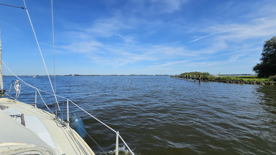 Das Wetter war für unsere Tour optimal. Es geht binnen, wenn alles gut geht: bis Harlingen und übers IJsselmeer wieder zurück. Wenn alles gut geht? Schon kurz hinter der Abzweigung nach Langweer, schickte uns einer dieser Chartertypen, die mit wenigen Minuten Einweisung offiziell mit dicken Pötten auf holländische Wasserstrassen losgelassen werden, in die Uferböschung. Wenn Wünsche in Erfüllung gehen würden; würde dieser Typ Heute noch in der Hölle schmoren. "Weil wir: ganz normal, auf der rechten Seite des Prinses Margriet Kanal unseren Kurs haltend mit 4,5 Knoten unterwegs waren". Wenige Meter hinter uns war eine offene Schaluppe auf den gleichen Kurs. "Dieser eben bezeichnete Chaterfuzzi kam uns entgegen". Plötzlich, wie aus heiterem Himmel änderte der Typ seine Kurs diagonal zu uns herüber: "der will uns rammen, waren die ersten Gedanken", der pennt, sieht der uns nicht? "Er zieht genau auf uns ab". Die Corina geht nach links, der "Fuzzi" hält auf uns zu. Die Corina geht nach rechts, der Typ hält auf uns zu! - Auf seinem Vorschiff lagen drei Bikininixen ohne Reaktion. Wir und die Besatzung der wenig hinter uns fahrenden Schaluppe schreien uns die Kehle heiser. "Die oder der da oben halten weiterhin ihren Kurs". "Im Kanal wollten wir nicht versenkt werden, wir gehen in die Böschung". - Weiter zum Ufer ging es nicht. Nur wenige Zentimeter vor uns haben diese Chaoten mitbekommen das sie ihr Charterboot fast aufs Ufer gesetzt und die Corina dabei fast versenkt hätten. Uns haben sie mit Sicherheit nicht gesehen. Beidrehen um diese Chaoten zur Rede zu stellen? - bringt das was? In der Aufregung ( Stresssituation) denkst du nicht ans fotografieren, an Bootsnamen et cetera. Wir haben eine Tröte an Bord, sind davon überzeugt das diese überhört worden wäre. "Sind och einmal Haarscharf davongekommen mit Wut im Bauch".