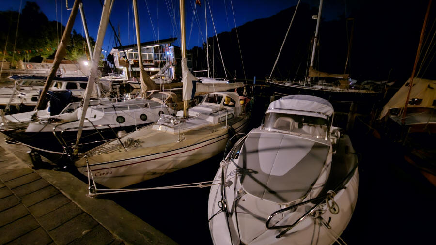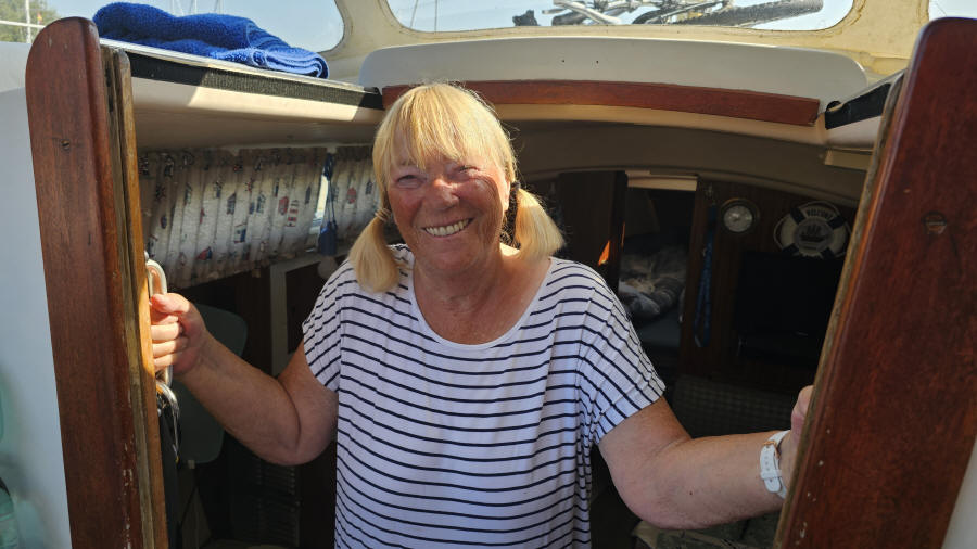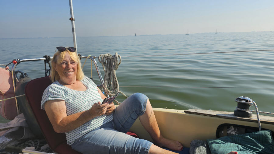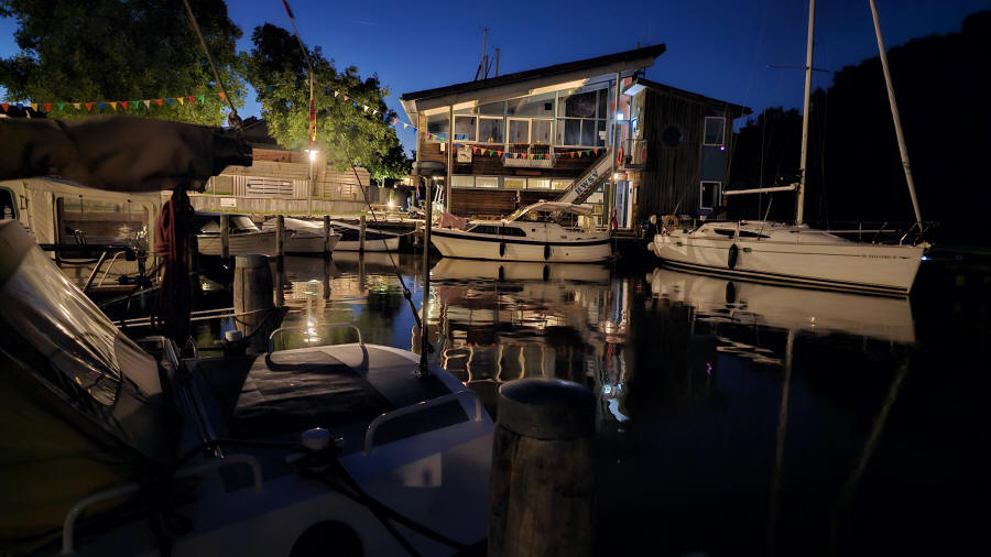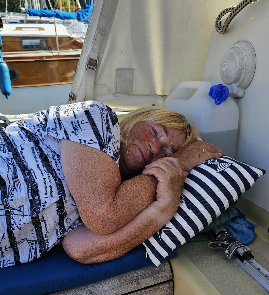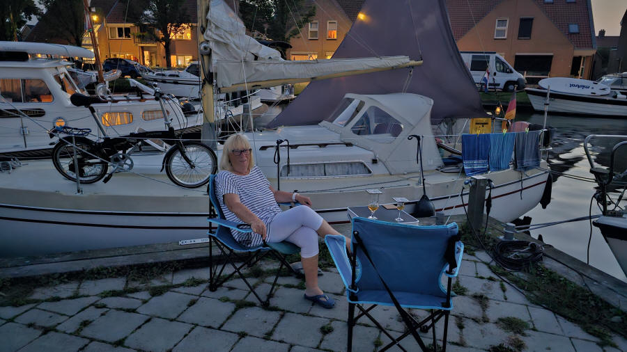 Pomprak, nannte sich der Wasserweg auf dem wir uns jetzt bewegten. Eine richtig schöne Landschaft und super tolles Wetter. Das Zeigte auch die "Nixe" die auf einem Sofa liegend; oben auf einem ausgemusterten Frachter, "zum Wohnschiff umgebaut", jeden vorbeifahrenden Skipper animierte mal hinzugucken. Es war Sommer und sehr warm! Oder mal festmachen und für heute unserem Nanni da unten eine Pause zu gönnen. Ja haben wir gemacht. Jachtwerf Leechlan so nannte sich der kleine schnuckelige Haven. "Für alle die nach uns kommen: Sie liegt da nicht mehr".