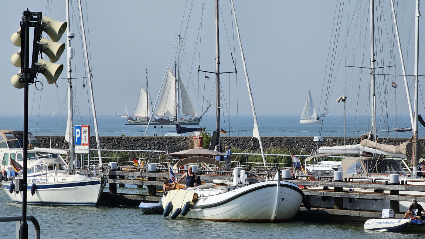 Übers JIsselmeer tuckern wir nach Stavoren. Ok, manchmal hilft ein Segel mit. Wir probieren es einfach aus.