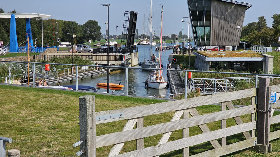 Wir sagen nach 2 Tagen: auf wiedersehen Harlingen, bis bald und und fahren im Wattenmeer über die Boontjes nach Kornwerderzand. Dort schleusen wir nach kurzer Wartezeit ins IJsselmeer und laufen nach ca.10 Seemeilen in Makkum ein.