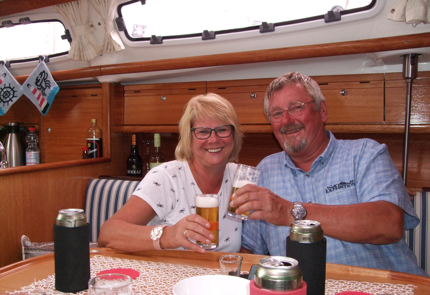 Die Stella ging diesen Burschen aus dem Weg. Einige grüßten sehr freundlich herüber. Nach drei Stunden war Harlingen wieder erreicht. Gegen 11uhr machten wir in den schon bekannten Sporthafen der Wassersportfreunde Harlingen fest. Zwei Bummeltage um das nette Städtchen kennenzulernen waren eingeplant, die wir auch ausgiebig genossen. Klar auch etwas Shoppen, muss ja sein, wenn Bärbel dabei ist. Ich hatte ja etwas gut zu machen. „Auf dem Wasser wird meine Frau immer besser“. Der Nachmittag in Harlingen sorgte wieder für Überraschungen. Wir kamen gerade vom Einkaufen zurück, da sahen wir schon aus einiger Entfernung die Balu vertäut am Steg liegen. Ursula und Klaus sind gerade eingelaufen. Es gab ein großes Hallo und einen „warmen Händedruck“. Klaus war sofort offen für ein kaltes Bier.