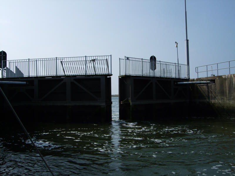 Warum für zwei Tage, wird verständlich, weil für den nächsten Tag Sturm angesagt wurde, mit Stärken über sechs. Der Freitag wurde also zum Hafentag erklärt. Mal Makkum erobern stand auf den Stundenplan. Der Weg zum Ort zieht sich um alle Häfen herum. An den Rückweg vollgeladen mit Fressalien, „Bier musste ebenfalls gebunkert werden“, wollten wir noch gar nicht denken. Jumbo im Zentrum war erreicht und der Einkauf vollzogen. Getränke tragen ist Schwerstarbeit, so außen am Körper in Taschen mit den Händen oder auch im Rucksack. Vier, fünf Dosen verlieren aber schlagartig ihr Gewicht wenn sie „drinnen“ Transportiert werden. Die Bushaltestelle vor dem Jumbo zeigte uns dass der Rückweg bequemer werden wird. Also noch etwas mehr bepackt warteten wir auf den Bus. „Zweimal Holleporte sagte Bärbel“. Na dann setzt euch mal. Will er kein Geld? fragte ich oder bekommt er ‘ne Prämie wenn Touristen kutschiert werden. Es war wieder eines dieser Erfreulichen Erlebnisse, die man hier in Friesland macht und oft als Selbstverständlichkeit abtut. In der Nacht krachten kräftige Gewitter über uns und luden wahre Sturzbäche ab. Der kommende Morgen kündigte wieder einen schönen Tag an. Heute geht es über Kornwerderzand, Harlingen nach Vlieland. Um unsere Planung abzusichern fragte ich den Hafenmeister nach Veränderungen die mein altes Kartenblatt nicht mehr hergab. Gegen acht Uhr fünfundvierzig ließen wir die Stella von der Leine. Kurs auf Kornwerderzand. Wind, WSW 4 Bft. Für die ca. 1,8 Seemeilen bis zu Schleuse benötigten wir nur die Fock, klar lief der Motor mit. Wir wollte schließlich mit dem großen Pulk ins Watt versetzt werden. Das übliche Gedränge vor der Schleuse hielt sich in Grenzen. Keine deutschen Segler weit und breit. Unseren Vorsatz, an der Schleusenwand fest zu machen, passte dem Schleusenwart nicht. Das kleine blaue Boot, durch die Mitte, ganz nach vorn schallte es über die Lautsprecher der Anlage. Der Gute packte seine Anlage recht voll. Na ja, dann sind wir eben die Ersten beim auslaufen. Um neun Uhr dreißig stand die Stella im Salzwasser. Flott laufend Richtung Harlingen über die Boontjes befreite sie sich von dem klebrigen Schleim, den das Süßwasser bei ihr anpappte. Voller Absicht ging es über die Boontjes. Harlingen würde angelaufen, sollte uns Unbehagen oder Zweifel übermannen. Es war eine Herrliche Tour, bei diesen Bedingungen macht das Segeln richtig viel Spaß.