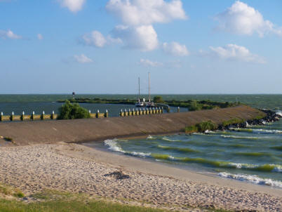 Klar n‘ Grappa und n‘ Pilsken für’n Papa. Uns geht’s gut, sagte mein Schatz als wir es uns in der romantischen Wohnhöhle der Stella gemütlich machten. Nach einem Küsschen und die schon tausendmal gestellte Frage: „hast du noch etwas zusagen, Schatz“ „schlaf schön durch bis morgen“ nahm ich die Hörgeräte heraus. Das Klappern der Leinen im Geläut konnte ich nicht mehr hören, ging aber meiner Gattin und den Mobos so auf den Geist, das ich doch noch einmal raus musste. Mit einem Gummistraps fixierte ich die Radaubrüder. Ich hasse die Kriecherei in die Kuschelkiste der Stella und gelobte Besserung oder war das schon Alzheimer? Am Mittwochmorgen zeigte sich unser Himmel noch bedeckt, ließ aber erahnen das es ein sonniger Tag werden würde. Nur der Wind sollte noch kräftiger blasen. Ausgiebig wurde gefrühstückt. Heute sogar mit Ei. Ich habe, „Männer sind so“, alle sechs vorhandenen Eier in einem Rutsch gekocht. Spart doch Zeit, sie können nicht platzen und auch kalt gegessen werden. Anschließend stand Ijsselmeer gucken auf unseren Plan. Zwei Boote die gerade die Schleuse verließen schaukelten durch die doch schon sehr hohen Wellen hinaus aufs IJsselmeer. Windfinder, der Wetterbericht am Aushang des Havenkantoors sprach von drei bis vier Beaufort. Ich zweifelte und sah noch einmal kurz ins Netz. Den Zugang habe ich am Vorabend beim Hafenmeister des Außenhafen besorgt. KPN für 5,95 – „lahm aber für uns gerade noch ausreichend“. In den Böen bis fünf und am Abend darf Gebietsweise mit Gewittern gerechnet werden. Ausschlaggebend für uns war die passende Windrichtung aus West. Wir waren allein in der Schleuse. Durch unsere schon oft gemachten Erfahrungen sind wir eine eingespielte Einheit. Es passte wieder alles hervorragend. Die Tore öffneten sich. - Die Stella reagierte bockig über das kabbelige Wasser im Hafenbecken mit den entsprechenden Wellen. „Hoch mit dem Tuch, oder sollen wir umkehren“. Du hast mir für Heute Makkum versprochen, ich will dorthin sagte Bärbel "und nicht über die Kanäle". Lass das Schiffchen laufen. Was vor zwei Jahren undenkbar gewesen wäre, macht Bärbel heute mit einer Selbstverständlichkeit die mich immer wieder überrascht. Selbst bei diesen rauen vierer Wind fühlt sie sich puddelwohl. Wir rauschen Richtung Makkum, immer schön nach Norden. Willst einen Kaffee oder lieber ein Bier, fragte meine Holde. Hindelopen zog an der Steuerbordseite vorbei.