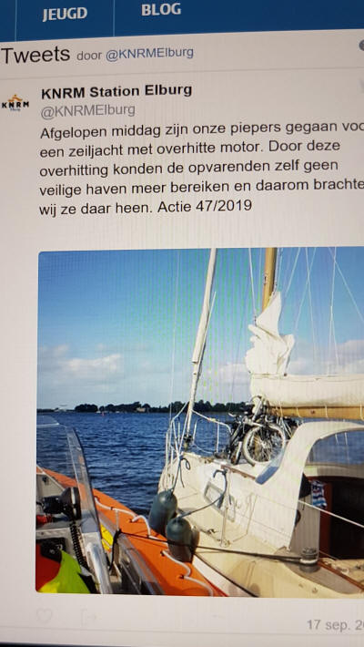 Es war ein Boot der KNRM Station Elburg, mit sechs Leuten besetzt. Ja sie haben sich schon gedacht das wir Hilfe benötigen würden. Die Leute von der Schleusenbaustelle hätten sie gerufen. Was passiert jetzt eigentlich: