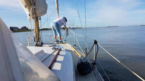 Booten. Ablegen gegen 10 Uhr steht im Logbuch.